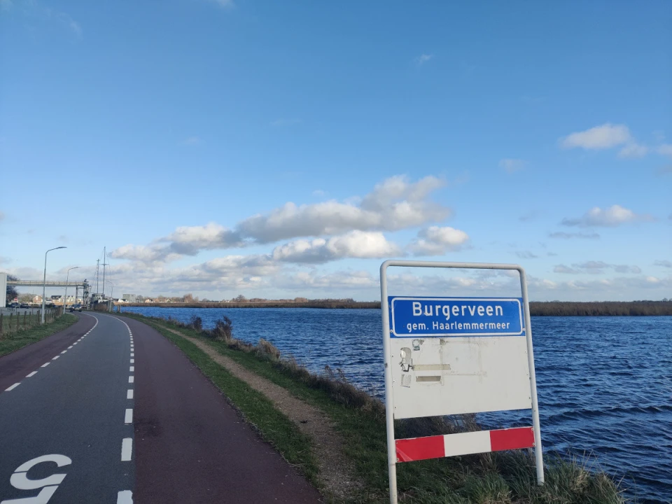 I walked through Leimuiden and took a right turn after crossing the Ringvaart of the Haarlemmermeer Polder. A 60 kilometer circular canal surrounding the Haarlemmermeer polder. This canal connects to the Westeinderplassen and I was supposed to follow until I reached the Amsterdamse Bos (The Amsterdam Forest).